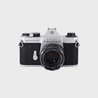 The Asahi Pentax Spotmatic F is a beautifully built mechanical SLR, known for its reliability and classic design. Paired with the sharp 55mm f1.8 lens, it delivers stunning image quality with a bright aperture perfect for portraits and low-light photography. The fully manual operation makes it an excellent choice for photographers who want to learn the fundamentals of film shooting and gain full creative control. Solid, precise, and timeless, it’s a camera that feels as good to use as the results it produces.