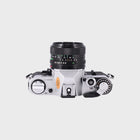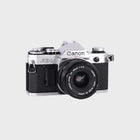 The Canon AE-1 is one of the most iconic 35mm SLR cameras ever made, loved for its reliability, ease of use, and classic design. It features shutter priority automatic exposure, allowing you to focus on composition while the camera handles the settings. Paired with the 28mm f2.8 lens, it’s perfect for landscapes, street photography, and travel — offering a wide field of view and sharp, detailed results. With its smooth handling, bright viewfinder, and timeless feel, the AE-1 remains a favourite among beginners and experienced photographers alike.