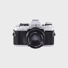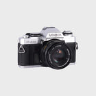 The Minolta X-500 (also known as the X-570) is a highly capable 35mm SLR camera that strikes the perfect balance between manual control and ease of use. It offers both manual and aperture priority modes, making it suitable for beginners learning film photography and experienced photographers who want precision. Paired with the sharp 50mm f2 lens, it delivers crisp, vibrant images ideal for portraits, travel, and everyday shooting. With its bright viewfinder, smooth handling, and dependable build, the X-500 is one of the most refined manual-focus SLRs of its time.