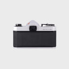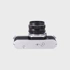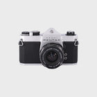 The Pentax Spotmatic SP1000 is a beautifully built, fully mechanical SLR known for its reliability and precision. With its simple manual controls, it’s an excellent camera for learning the fundamentals of film photography. Paired with a sharp 35mm f3.5 lens, it offers a slightly wider field of view that is perfect for landscapes, street photography, and everyday scenes. The camera’s solid metal body and smooth controls make shooting a pleasure, and its timeless design has made it a favourite among both beginners and collectors.