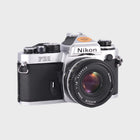 The Nikon FE2 is a fast, responsive SLR that is ideal if you want a camera with classic handling but modern reliability. Its advanced shutter and bright viewfinder make it a pleasure to use, and the aperture-priority mode keeps things simple when you want quick, accurate exposure. With the 50mm f1.8 lens, you get a versatile setup that works for portraits, street and everyday photography, offering sharp results and good low-light performance. Compared with the Nikon FE, the FE2 is quicker and more refined, making it an excellent choice for anyone who wants a lightweight and capable camera that still feels fully manual.