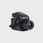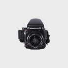 The Mamiya 645 Pro is a professional-grade medium format SLR camera, renowned for its modular design, reliability, and exceptional image quality. It offers full manual control along with aperture priority automatic exposure when paired with the AE prism finder, making it versatile for both studio and outdoor work. The 55mm f2.8 lens (approximately 35mm equivalent in 35mm format) provides a natural wide perspective, ideal for portraits, landscapes, and documentary photography. With interchangeable film backs, finders, and grips, the 645 Pro is a flexible system camera designed for photographers who want the rich detail and depth only medium format film can deliver.