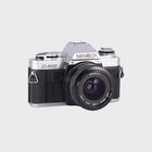 The Minolta X-300 is a reliable and easy-to-use manual focus SLR, perfect for both beginners and enthusiasts. It offers aperture-priority automatic exposure as well as full manual control, giving you flexibility whether you prefer simplicity or complete creative input. Paired with the 28mm f3.5 lens, it delivers sharp wide-angle shots ideal for landscapes, travel and street photography. Lightweight and comfortable to handle, the X-300 is a great introduction to film photography within the Minolta X-mount system.