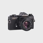 The Minolta XD7 is a classic SLR highly regarded for being the first camera to feature both aperture-priority and shutter-priority automation in one body, while still offering full manual control. This makes it a very flexible camera for photographers of all levels. Paired with the sharp 50mm f1.7 lens, it performs beautifully for portraits, everyday shooting and low-light situations. With its solid build quality, bright viewfinder and intuitive controls, the XD7 remains one of Minolta’s finest and most enjoyable film cameras to use.