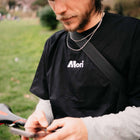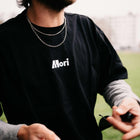 Le t-shirt Mori Crew est un basique simple à porter au quotidien. Nous l'avons créé parce que c'est un vêtement que nous aimons porter. Confectionné en coton biologique noir épaiset orné d'un logo blanc brodé sur le devant, c'est un vêtement facile à porter en toute occasion.
