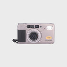 The Contax TVS is a premium compact designed for photographers who want outstanding image quality in a small and elegant body. Its sharp 28–56mm zoom lens, made by Carl Zeiss, delivers rich contrast and clarity, giving you excellent results whether you are shooting wide street scenes or tighter portraits. The camera handles focus and exposure automatically, making it easy to use even if you are new to film, while still offering enough control for more experienced users. With its solid build, smooth controls and high-quality optics, the TVS is a brilliant everyday camera for travel and city photography.